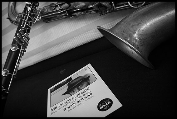 Sunday jazz loft musicien Francesco Bearzatti saxophone saxophoniste clarinette clarinettiste Franck Avitabile pianiste piano photo noir et blanc reportage concert jazz programme