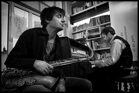 Sunday jazz loft musicien Francesco Bearzatti saxophone saxophoniste clarinette clarinettiste Franck Avitabile pianiste piano photo noir et blanc reportage concert jazz