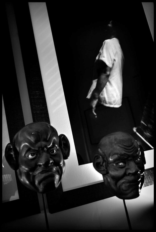 Mais la visite ne fait que commencer. Avant de découvrir une séries de bonzes, de bronzes et de terres cuites, de kimonos miniatures ou d’estampes japonaises je me retrouve dans l’entrée. Cette fameuse entrée. Celle que je devais transcender à l’époque par mes photographies. Celle qui avait besoin de ce quelque chose pour devenir L’ENTRÉE, comme ils me le répétaient sans cesse. “Pourquoi ne pas habiller ses quatre colonnes de quatre tirages ?” avais-je lancé un jour. Tout de suite ils avaient adhéré à cette idée saugrenue qui trottait dans mon esprit depuis bien longtemps, mais que je ne pouvais pas mettre en place n’ayant pas de colonnes sous la main.