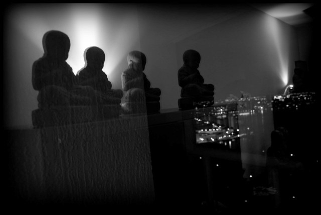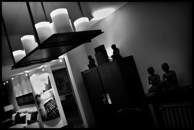 …Cet appartement bourgeois dans lequel je me trouve est l’une des demeures secondaires d’un couple de collectionneurs parisiens qui m’avait commandé quatre ans auparavant une série de photographies pour décorer son nouveau lieu de villégiature. Lieu qui m’était alors inconnu à l’exception de quelques clichés amateurs qui m’avaient donné une pré-saveur de ce qu’allait être cette maison en altitude qu’ils appellent ici penthouse. Je devais leur proposer des images de reportage pour enrichir le style asiatisant qu’ils souhaitaient donner à leur appartement. Et je le découvre enfin 48 mois plus tard, terminé. J’ai peu de temps pour faire connaissance avec cet appartement-musée où chaque pièce propose des arrêts culturels étonnants. Je passe du Japon à la Chine, du Vietnam à Bali, de Bangkok à Vientiane. Tant de réalités fantasmées par ces voyageurs d’expositions. Tant de parcelles de vies de ces explorateurs par procuration, façonnées par le regard aiguisé d’antiquaires spécialisés. Univers auquel j’ai participé modestement sans le savoir avec mes tirages photographiques.