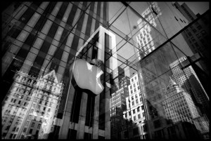 …Deuxième matin. Je propose à mon père de m’accompagner. Je marche plus lentement, je fais moins de photos, nous discutons tranquillement et d’autres choses se passent. En arrivant devant l’Apple store de la 5e avenue nous sommes aspirés dans l’Apple way of life. Mon père disparaît au milieu de cette foule à l’affût des nouveaux produits de la Mac generation tandis que je reste fasciné par les escaliers qui nous ont descendus dans les sous-sols du temple de la culture Mac.