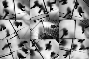Il me faut alors une nouvelle année pour aboutir le travail qui d’ailleurs prend une toute autre ampleur. C’est en juillet 2010 que je mets un point quasi final à ce chantier, date limite que je m’étais fixée pour présenter le résultat à mon collectionneur. D’une composition photographique de départ j’en ai construit huit, déclinées en quatre variations. Il est convaincu par la transcription visuelle de mon idée originelle et réserve la pièce centrale de mon projet. Une œuvre d’1,2 mètre sur 80 cm représentant une composition de huit photos de pieds en mouvement, gravitant autour d’une image centrale, celle de l’escalier de l’Apple store de New York. Je suis soulagé.