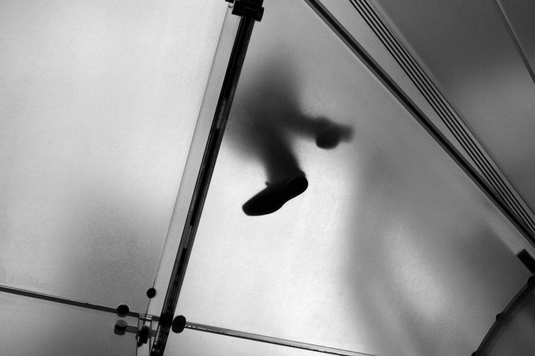 En traversant New York il y a un an et demi j’ai croisé des expressions sur des visages vus de face et j’ai découvert les attitudes de corps vus du dessous. Cet autre angle m’a offert un regard très différent sur la vie new yorkaise rythmée par des répétitions entre flous et transparences. Dans ces petits instants évoqués qui se refusent à tout montrer, je me suis finalement davantage rapproché des gens qu’avec des portraits très serrés, photographiquement forts, mais seulement suscités par le désir d’un effet de style.