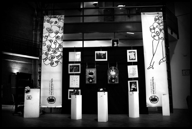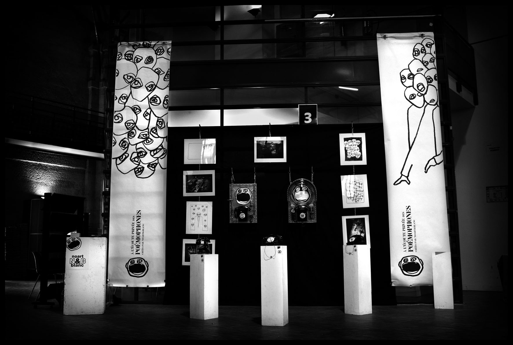 Écoute des poèmes dans les différents poémophones installés sur le stand.