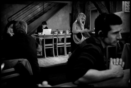 Ce matin-là à la table d’en face, une petite table, un garçon italien – je le saurai par la suite -, lève la tête de son ordinateur, me salue comme un habitué du lieu et engage la conversation. Il décline son identité et même un peu plus, je fais de même. Nous échangeons sur notre quotidien, sur ce qui nous fait lever le matin. Il est chercheur, fait des conférences, vit entre la France et l’Italie. J’évoque mon travail poétique, il semble intéressé. Je lui parle de mon projet en cours sur le jazz, il reste attentif. Je lui dis être à la recherche d’un musicien pour accompagner mes poèmes et mes photos, il me répond du tac au tac qu’il en connaît plusieurs et me parle d’un certain Francesco Bearzatti, un autre Italien. Étrange, l’Italie entre à nouveau dans ma vie mais je ne m’en rends pas encore compte.