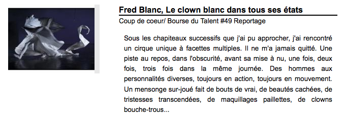 Ça alors ! Tu as été “coup de coeur” de la Bourse du Talent ?! Mais je ne savais pas…