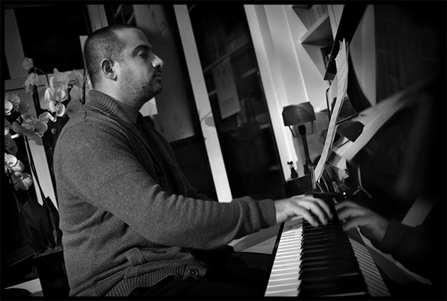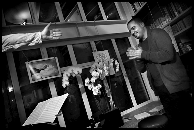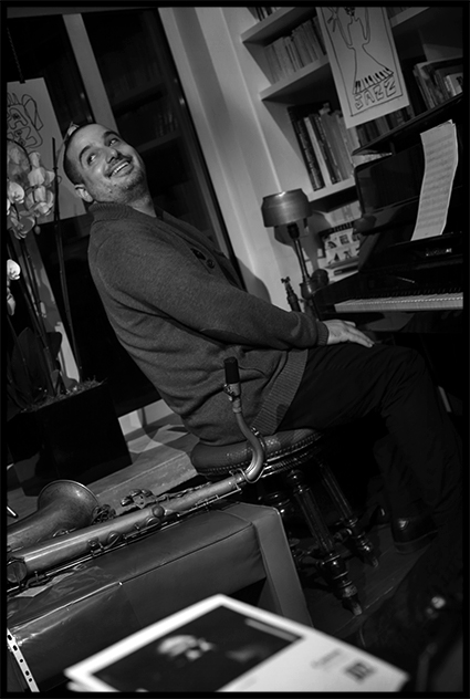 Une musique venue d’ailleurs a atterri délicatement au centre du loft, entre Francesco Bearzatti posté sous la lumière et Yonathan Avishai assis dans la pénombre.