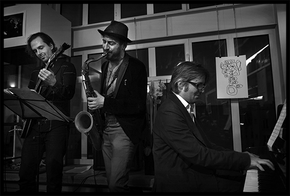 Mais revenons à ce 1er février. Ni trop chaud ni trop froid. Après une courte présentation des partenaires des concerts : « jazz&people », le premier label de jazz participatif français et “Couleurs jazz”, le premier magazine de jazz sur ipad, on a eu droit aux premiers sons du trio.