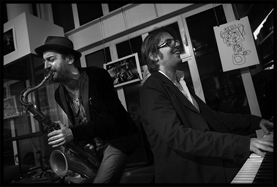 Tout en lumière, ils sont montés en puissance, sans nous le dire, sans rien déranger de la tranquillité du loft, à coup d’à-coups imperceptibles, au coude à coude devant la grande baie vitrée, à coup de rythmes et de syncopes, à coup de sax et de cordes électrisant les rondeurs des morceaux, à coup de doigts sautant de touches en touches avec l’élégance d’un noir et blanc de sortie, à coup de grimaces, de tensions et de relâchements. À coup final…