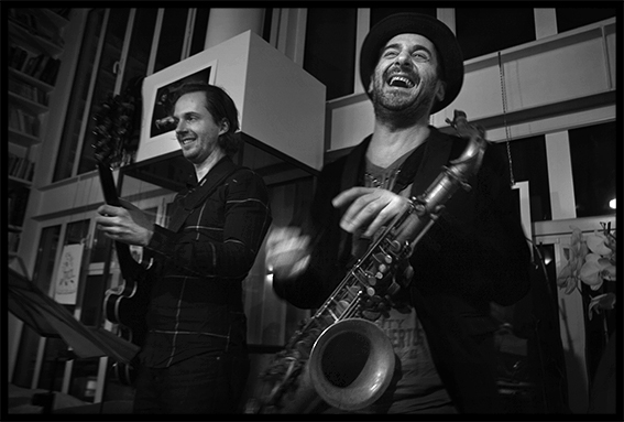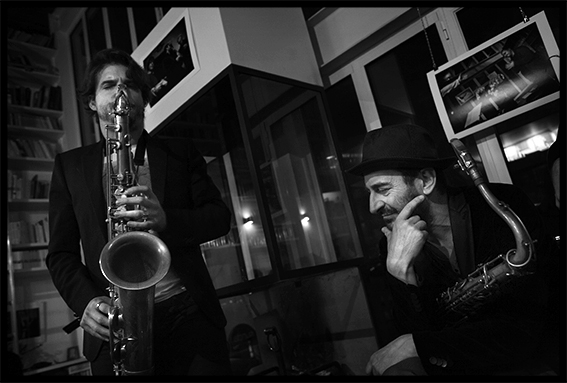 Avant d’accueillir un invité surprise, Samy Thiébault, un autre sax, au sourire débordant de joie. Très vite, ils se sont renvoyés la note dans une frénésie quasi fraternelle. Alors le public a oublié d’arrêter d’applaudir pendant un moment, le temps que le chapeau tourne, que les chaises se plient, que le buffet se dresse, que les assiettes se vident, que les amis des Sunday jazz loft s’éclipsent avec les musiciens, et que nous restions seuls avec nos souvenirs. Mais je crois que le public avait arrêté d’applaudir bien avant, quand même.