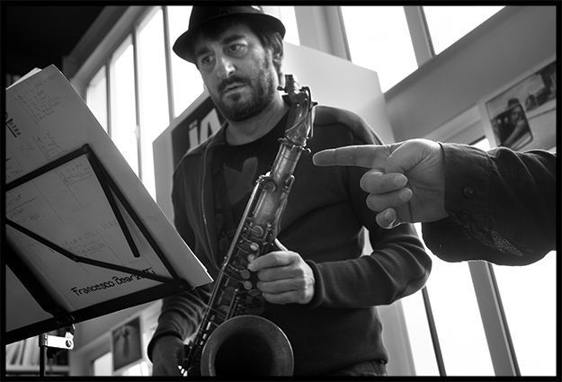 12e Sunday jazz loft noir et blanc photo image reportage concert en appartement Francesco Bearzatti musicien saxophoniste clarinettiste saxophone