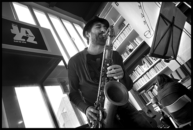 12e Sunday jazz loft noir et blanc photo image reportage concert en appartement Francesco Bearzatti musicien saxophoniste clarinettiste saxophone Jean-Pierre como pianiste piano