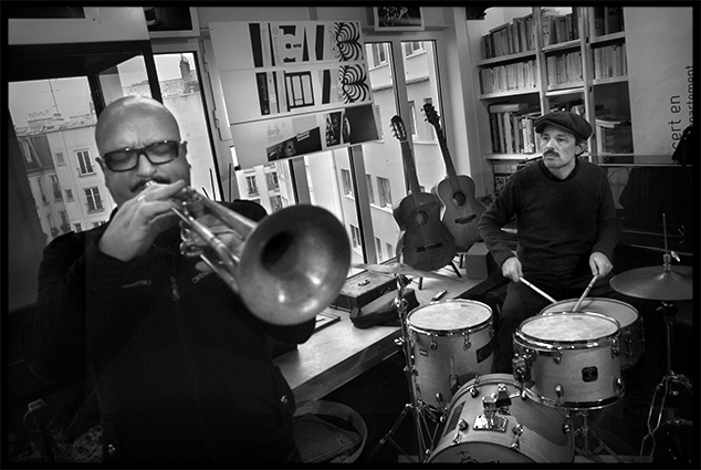 14e Sunday jazz loft Tinissima 4tet dimanche concert appartement photo noir et blanc clarinette Giovanni Falzone trompette