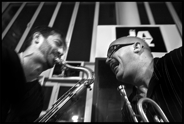 14e Sunday jazz loft Tinissima 4tet dimanche concert appartement photo noir et blanc Francesco Bearzatti saxophone tenor Giovanni Falzone trompette
