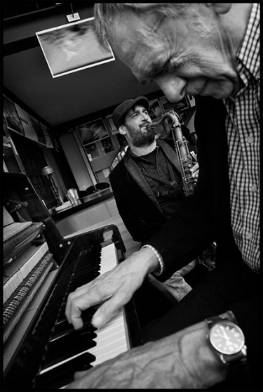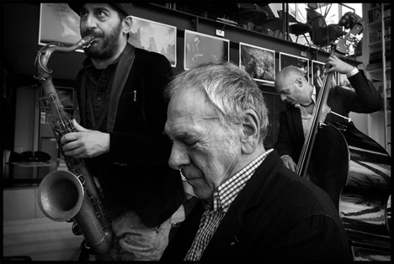 Alors avant-hier le roi René, cet homme qui a joué aussi bien avec Miles Davis que Chet Baker, Stan Getz ou Stéphane Grappelli, n’était pas dans le loft lors de cette fin de dimanche lumineux, les mains sur-sautillant sur le piano à la pédale à nouveau grinçante, tel un instrument qui se serait invité lui-même dans les solos – sans qu’on l’ait convié, ça je vous le promet. Le roi René n’était pas là, il n’a donc pas pu se sentir à l’aise et tomber la veste dès le deuxième morceau sans s’arrêter de jouer pour autant.