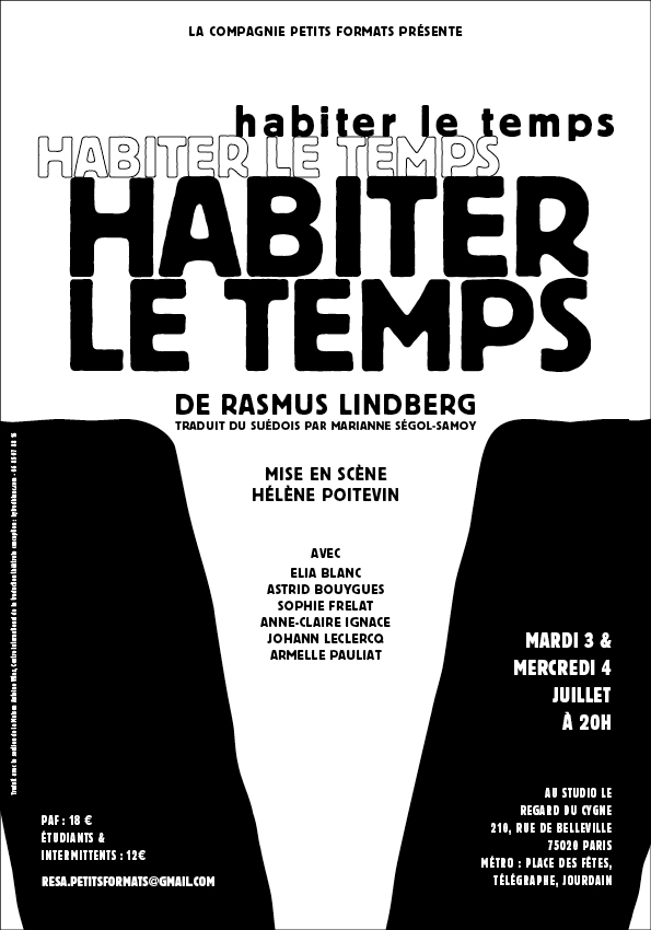 Ce soir et demain soir, ma femme Astrid Bouygues comme mon fils Elia Blanc jouent ensemble dans la pièce de théâtre “Habiter le temps” au Studio le Regard du Cygne.
