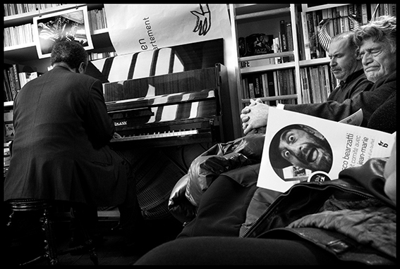 Avant que l’on ne ferme la 19e session avec mes deux poèmes enjazzés, Thierry Eliez vient endiabler notre piano d’étude qu’il connaît déjà fort bien. Pour la première fois, je lis mes poèmes accompagné par la clarinette de Francesco, j’ai plutôt envie de dire soutenu, propulsé par elle… et c’est grisant. Mais comment fait-il pour arriver à coller autant à mes mots, à mes intentions cachées, alors qu’il n’a entendu ces deux poèmes qu’une seule fois, rapidement, quelques heures auparavant ?