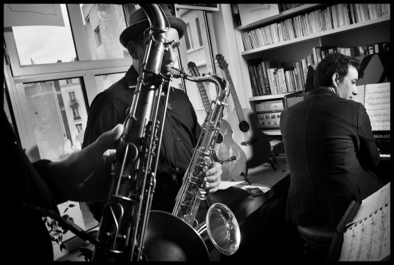 Entre les surprises d’anniversaire des petits Blanc, celle d’Esther en duo avec son père puis celle d’Elia, et la surprise de Francesco Bearzatti, plus musicale, deux talentueux personnages sont venus raconter le jazz en loft aux côtés de Mister Francesco.
