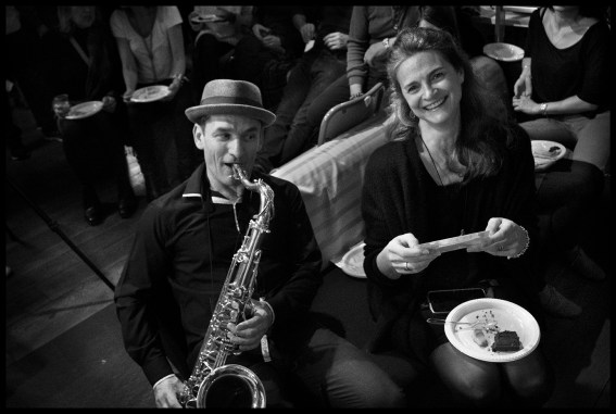 La première surprise qui était loin d’être la dernière est tombée quand Francesco a annoncé le prochain morceau, spécialement écrit pour Matthieu Desport, notre infatigable cameraman-monteur, et pour moi, petite main de l’organisation. Quel beau cadeau et quelle musique – ce genre de musique qui nous embarque dans la folie de son auteur, avec humour et joie de vivre. Merci mon ami.