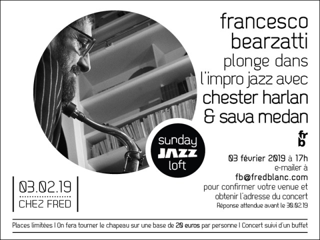 2014 : Création de l’évènement “Sunday jazz loft”, concert en appartement, aux côtés de Francesco Bearzatti.