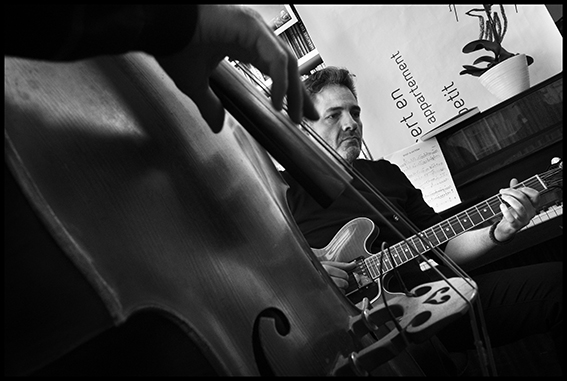 Nos oreilles grand ouvertes aux échanges entre interprètes, glissant sur le fil d’une impro à venir, d’une impro attendue, d’une improbable partition se désagrégeant avant de retrouver sa forme première.
