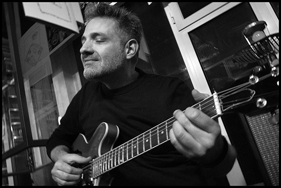 Juste équilibre où l’on perçoit parfois une voix venue d’ailleurs, soit en forme d’onomatopée respirative ressemblant à un genre de « hummm », soit construite dans un franglais italianisant et s’interrogeant sur la composition suivante que le groupe d’un soir pourrait jouer.