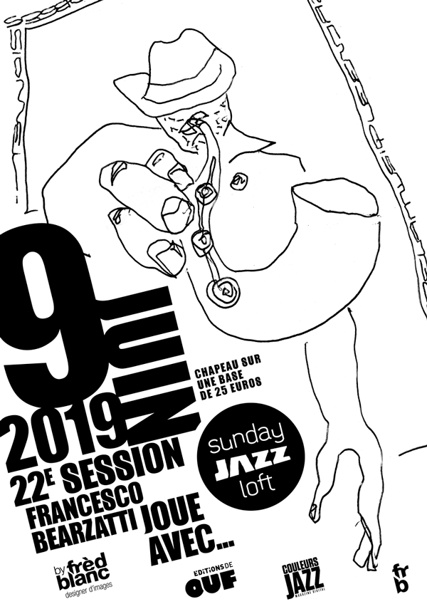 22e Sunday jazz loft Francesco Bearzatti saxophoniste dessin affiche affichette concert jazz en appartement byfredblanc