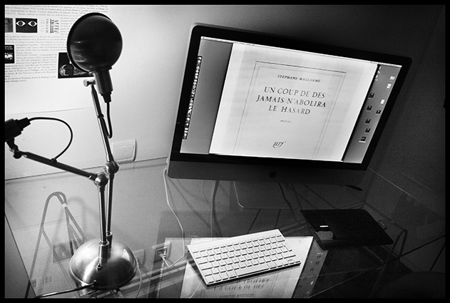 Robert Massin portrait reportage Portrait ©frèdblanc noir et blanc nb n&b graphiste écran ordinateur lampe couverture livre nrf clavier table verre cable reflet