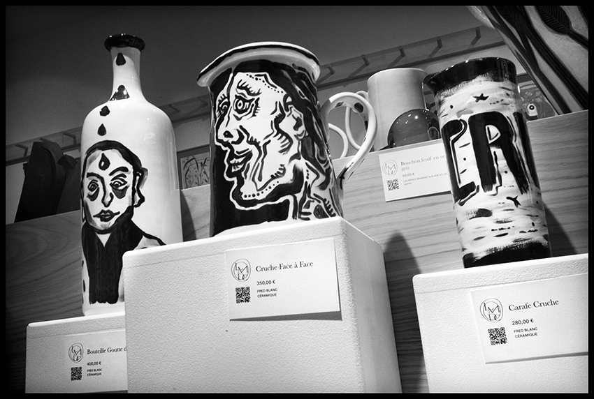 Le soir du vernissage dans la “maison de commerce”, magasin de décoration du quartier Saint-Germain, je découvrais mes œuvres cuites, avec la vraie couleur noire de mes dessins aux jeux de transparence choisis ou accidentels.