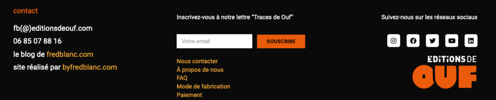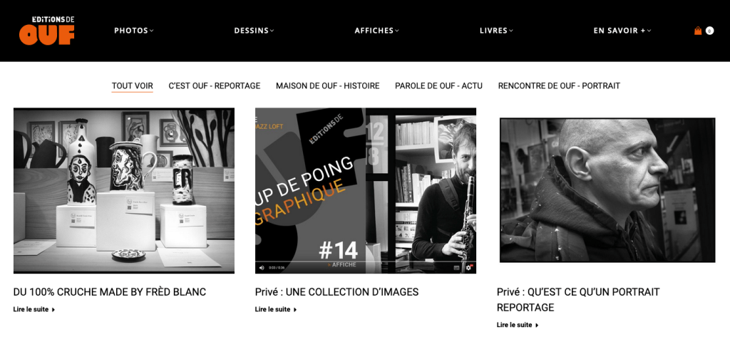 Les articles que vous suivez sur ce blog et qui concernent mes œuvres artistiques liées à la photographie, le dessin, les affiches et les livres sont pour la plupart présents sur le site des “Éditions de Ouf” à la rubrique en “savoir plus” puis “actu”.