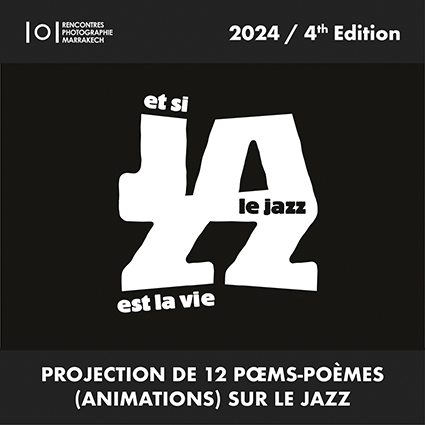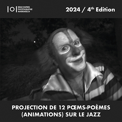 Il m’informa que je devais maintenant intégrer mes photos dans un montage vidéo pour qu’il puisse s’inscrire dans l’une des projections des rencontres de Marrakech. Je me rappelais alors que j’avais un montage vidéo dans mes cartons, celui des poèmes-poèmes sur le jazz. Douze animations qui traitent de l’espoir, l’errance, la violence et l’évasion. Douze Films photographiques croisant mes différentes disciplines artistiques comme le dessin, la poésie, le graphisme, la typographie et l’animation.