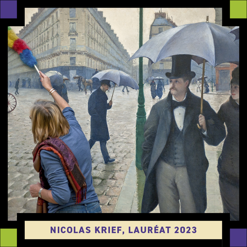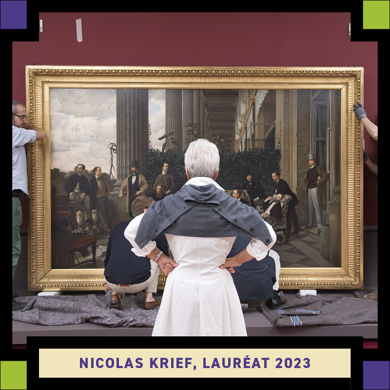 L’année suivante notre second lauréat est Nicolas Krief qui a remporte le prix avec sa série sur l’installation d’une exposition au musée d’Orsay, où les regards des installateurs croisèrent avec humour les œuvres d’art.